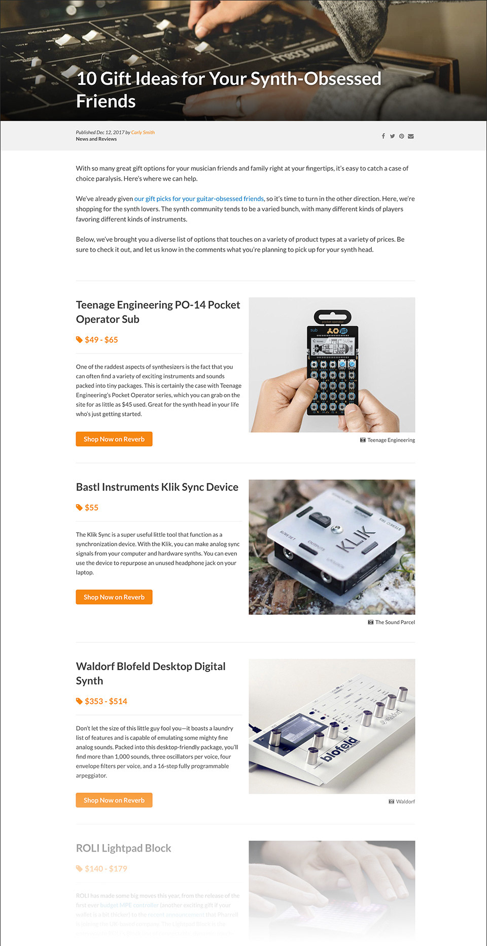 During my time at Reverb.com, I worked closely with the editorial team to lay out content pieces ranging from buyer’s guides and interviews to photo galleries and breaking news stories.